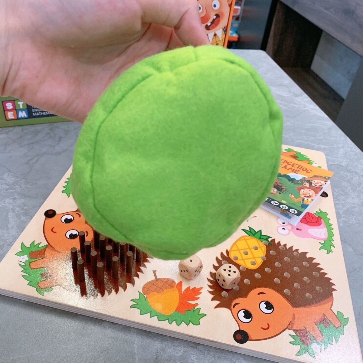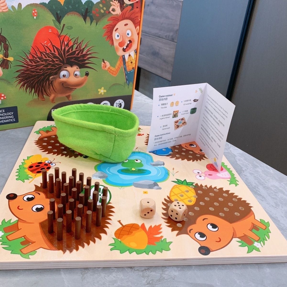 Hedgehog Wooden Stick Game is a Montessori-inspired educational toy that enhances children’s fine motor skills and mathematical thinking. Designed for fun and learning, the game includes a game board, two dice, 120 wooden sticks, a fabric tray, and easy-to-follow instructions in both English and Chinese.
