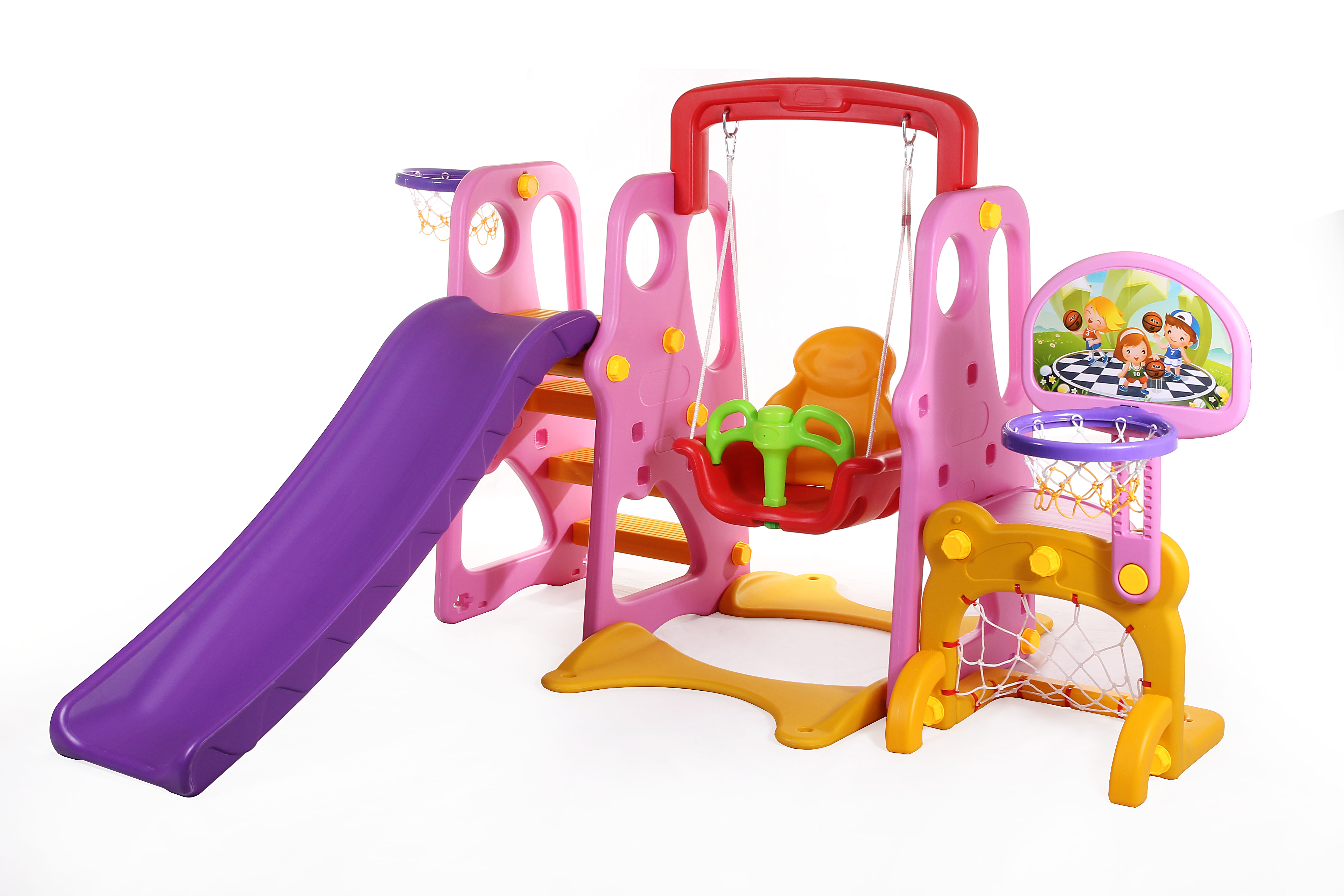 Kids Slide Swing Set Basketball Hoop Rings